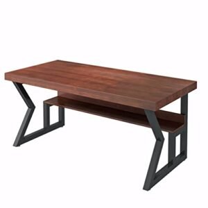 電腦桌工業實木家庭辦公桌。 實木再生木學習桌遊戲桌。 帶金屬支架的辦公傢俱(尺寸:140x60x75cm)