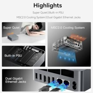 BOSGAME P4迷你PC Ryzen 7 5700U(高達4.5GHz.8C/16T)迷你電腦DDR4 16GB RAM 512GB M.2 PCIe NVMe SSD。 迷你PC Windows 11 Pro |雙2.5G RJ45局域網|HDMI&DP&USB-C |4K 60Hz |WiFi 6E