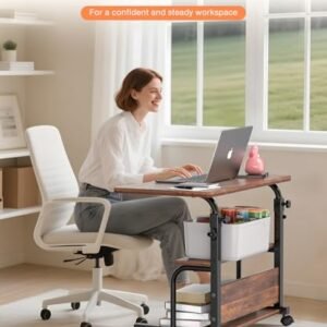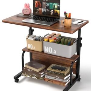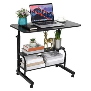 QZMDSM可擕式滾輪辦公桌,高度可調,適用於小空間。 32電腦桌,帶存儲架,適合家庭辦公室使用