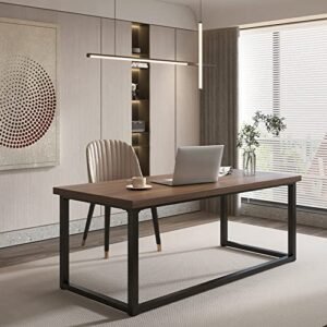 電腦桌工業實心再生木桌。 家庭辦公室立式辦公桌。 帶金屬腿的寫字臺遊戲桌。 棕色(尺寸:180x80x75cm)