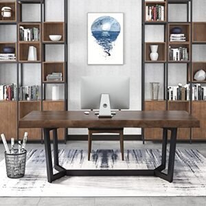 電腦桌再生實木電腦桌。 工業風格家庭辦公遊戲會議桌。 5CM厚案頭辦公傢俱(尺寸:150X70X75CM)
