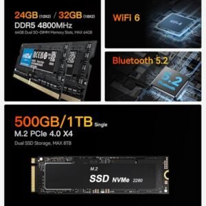 Beelink EQR6迷你PC。AMD Ryzen 9 6900HX(8C/16T,最高4.9Ghz)。 32G DDR5 RAM 1TB PCIe4.0 SSD迷你電腦。 WiFi6。 BT5.2。 雙HDMI。 雙1000M局域網。 USB3.2。 Type-C