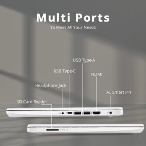 - 【SPECIFICS + 5-IN-1 VALUE PACK BUNDLE】13.27 x 8.90 x 0.70 Inches. 3.17 lbs. 1x HDMI 1.4 / 2x USB 3.1 / 1x USB 2.0 / 1x headphone/microphone combo / 1x micro SD media card reader. WiFi. Bluetooth. HP TrueVision 720P Camera with integrated dual array digital microphones. Up to 11 Hours Battery Life.White. +Authorized HubxcelAccessories 5-in-1 Value Bundle: Includ 64GB memory Card. Wireless Earbuds. Mouse Pad. HDMI Cable. USB Cable. Wireless Mouse for your daily work and life