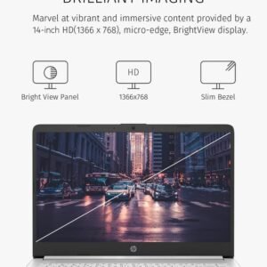 - 【14.0 HD LED Display】14.0-inch diagonal. HD (1366 x 768). micro-edge. BrightView. 220 nits. 45% NTSC display. Ideal for Home. Student. Professionals. Small Business. School Education. and Commercial Enterprise. Online Class. Google Classroom. Remote Learning. Zoom Ready