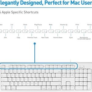 - THE PERFECT COMPANION TO YOUR MAC COMPUTERS & MACBOOKS: With 104 keys. 16 Apple specific shortcut keys. and a numeric pad. our mac wired keyboard is a perfect and sleek external keyboard match to your Apple device.