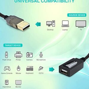 - 【Long Extension Cord】Connect remote USB devices such as keyboard. printer to your computer. Play games. watch movies. all from the comfort of your sofa. There’s no need to bend down under the desk or behind the TV to plug USB peripherals anymore