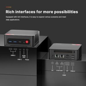 BOSGAME P4迷你PC Ryzen 7 5700U(高達4.5GHz.8C/16T)迷你電腦DDR4 16GB RAM 512GB M.2 PCIe NVMe SSD。 迷你PC Windows 11 Pro |雙2.5G RJ45局域網|HDMI&DP&USB-C |4K 60Hz |WiFi 6E
