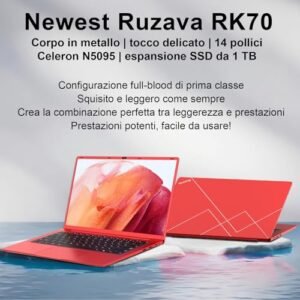 Ruzava筆記型電腦14英寸FHD IPS顯示幕。 Win11。 Celeron N5095(最高2.9 GHz)8 GB RAM 256 GB SSD支持1TB。 5G WiFi。 BT4.2。 USB 3.0。 5000毫安培時。 HDMI。 配備QWERTY鍵盤和無線功能的筆記型電腦