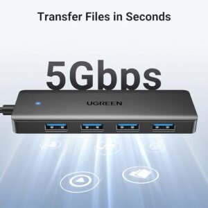- Transfer Files in Seconds: The USB 3.0 Hub supports a max file transfer speed of 5Gbps. That’s fast enough to transfer a 10 GB file in just 16.4 seconds.